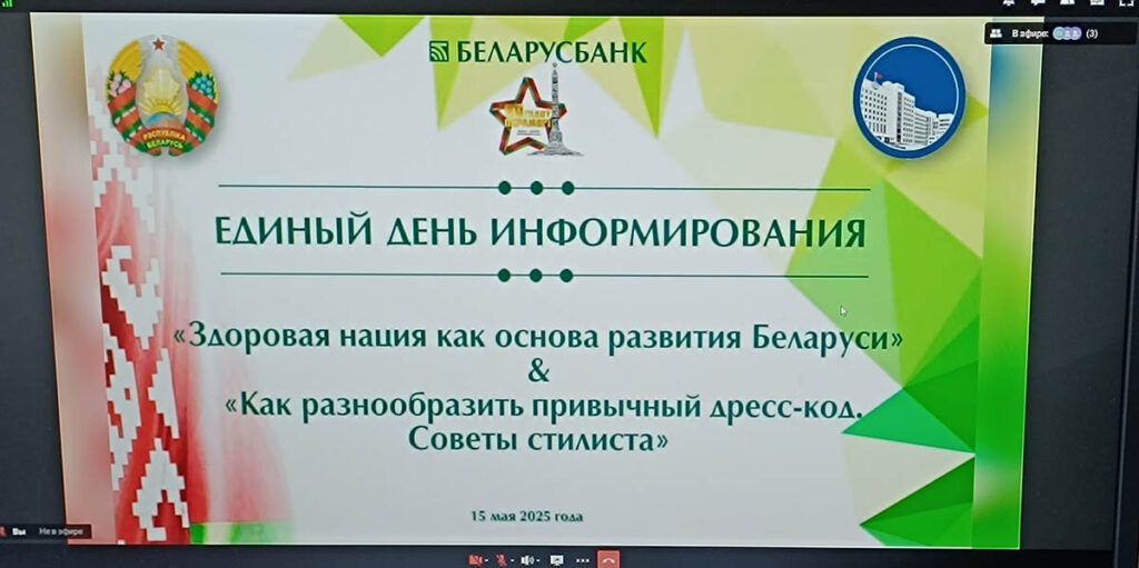 В рамках единого дня информирования в День семьи 15 мая 2025 в формате диалоговой площадки трудовой коллектив ЦБУ №703 принял участие в информационной встрече с депутатом Палаты представителей Национального собрания Республики Беларусь, членом Постоянной комиссии по здравоохранению, физической культуре, семейной и молодежной политике Мирончик-Ивановой Анастасией Сергеевной и стилистом, консультантом по имиджу Мусса Викторией Александровной