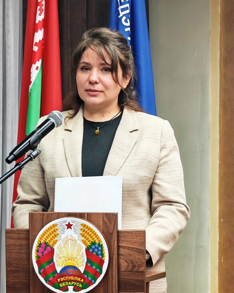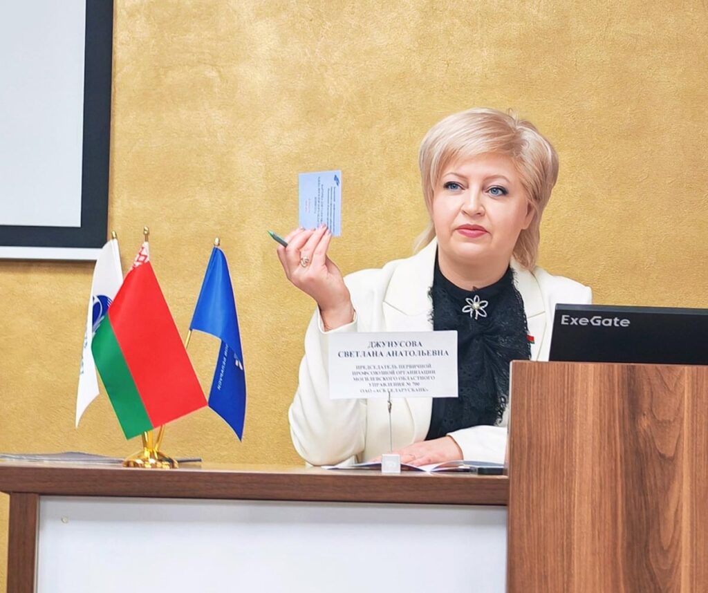 Светлана Джунусова, председатель Первичной профсоюзной организации Могилевского областного управления №700 ОАО АСБ «БЕЛАРУСБАНК», в своем докладе отметила важность работы в области молодежной политики, закрепления молодых специалистов в отрасли, акцентируя внимание на итогах работы за 2025 и планах на 2026 год.