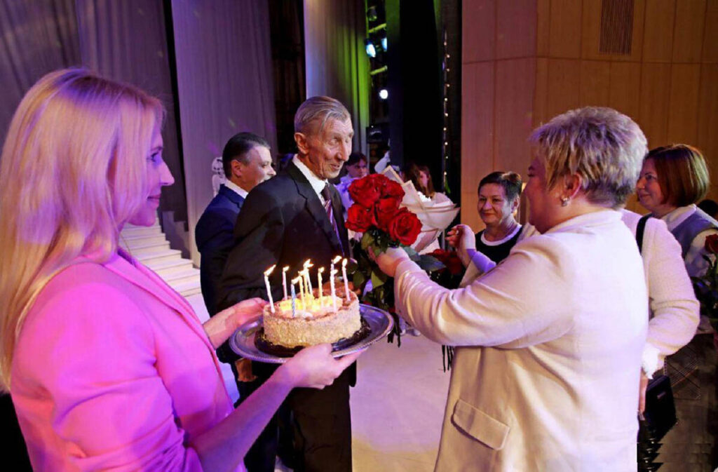 Изумительно теплые слова и темпераментные музыкальные поздравления звучали со сцены для юбиляра. Александр Парфенович в этот вечер сидел в зрительном зале, а на экране появлялись фрагменты интервью, кадры из спектаклей и фильмов с его участием. Заслуженный артист провел зрителей через свою замечательную жизнь и важные вехи служения театру, где отразились блестящие грани его творчества.