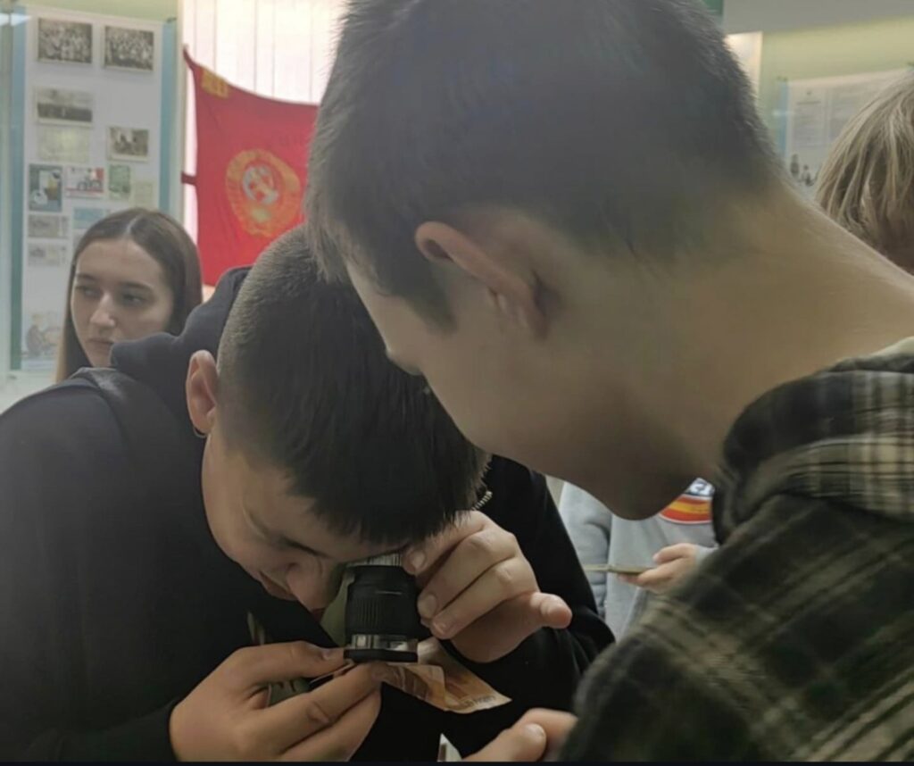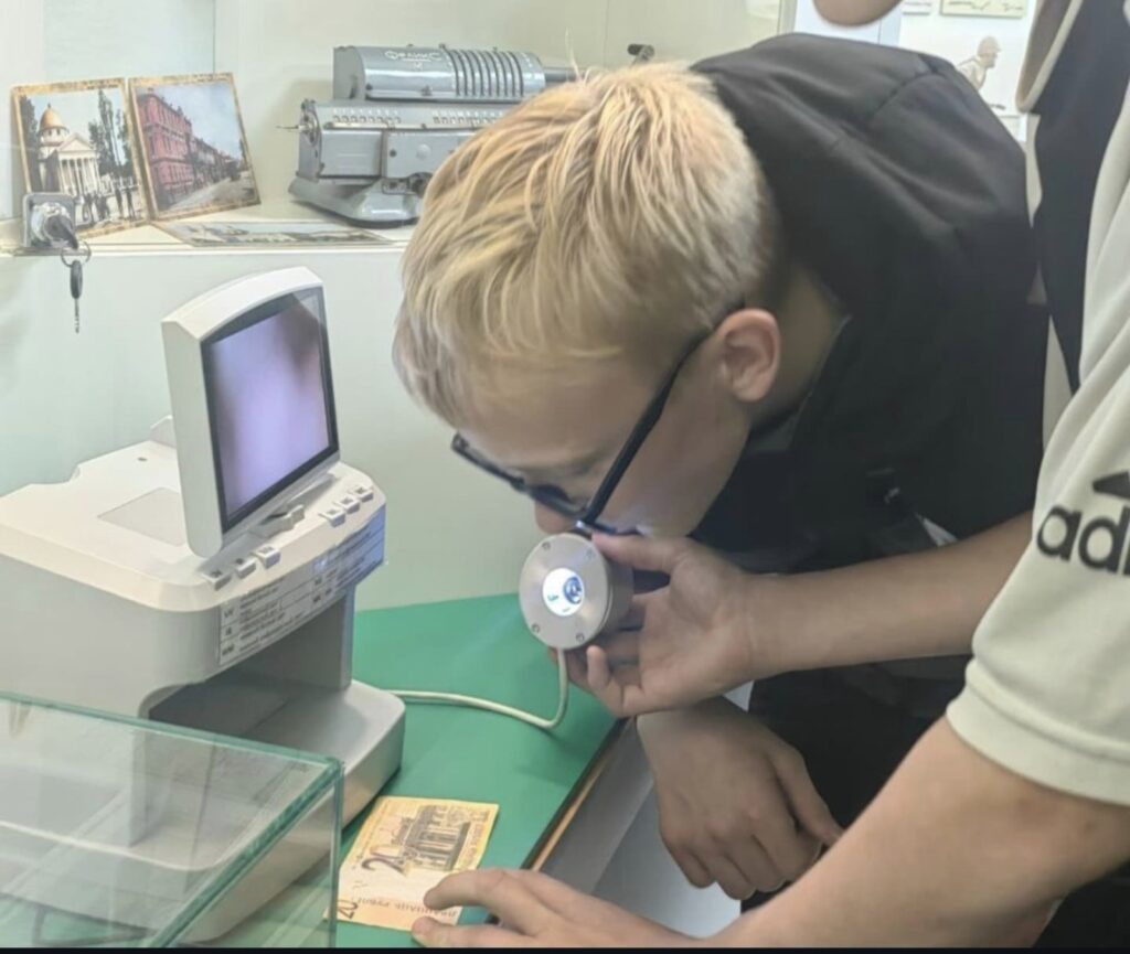 Особенно увлекательной частью экскурсии стала интерактивная программа. Ученики попробовали проверить белорусские купюры на подлинность, применяя специальные методы и технику, а также решили математические примеры на деревянных счетах, что позволило им окунуться в атмосферу старых времён.